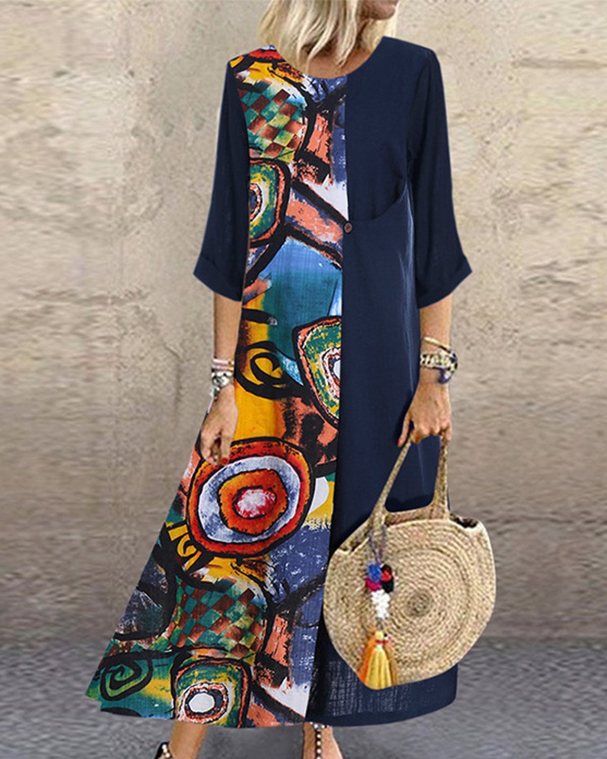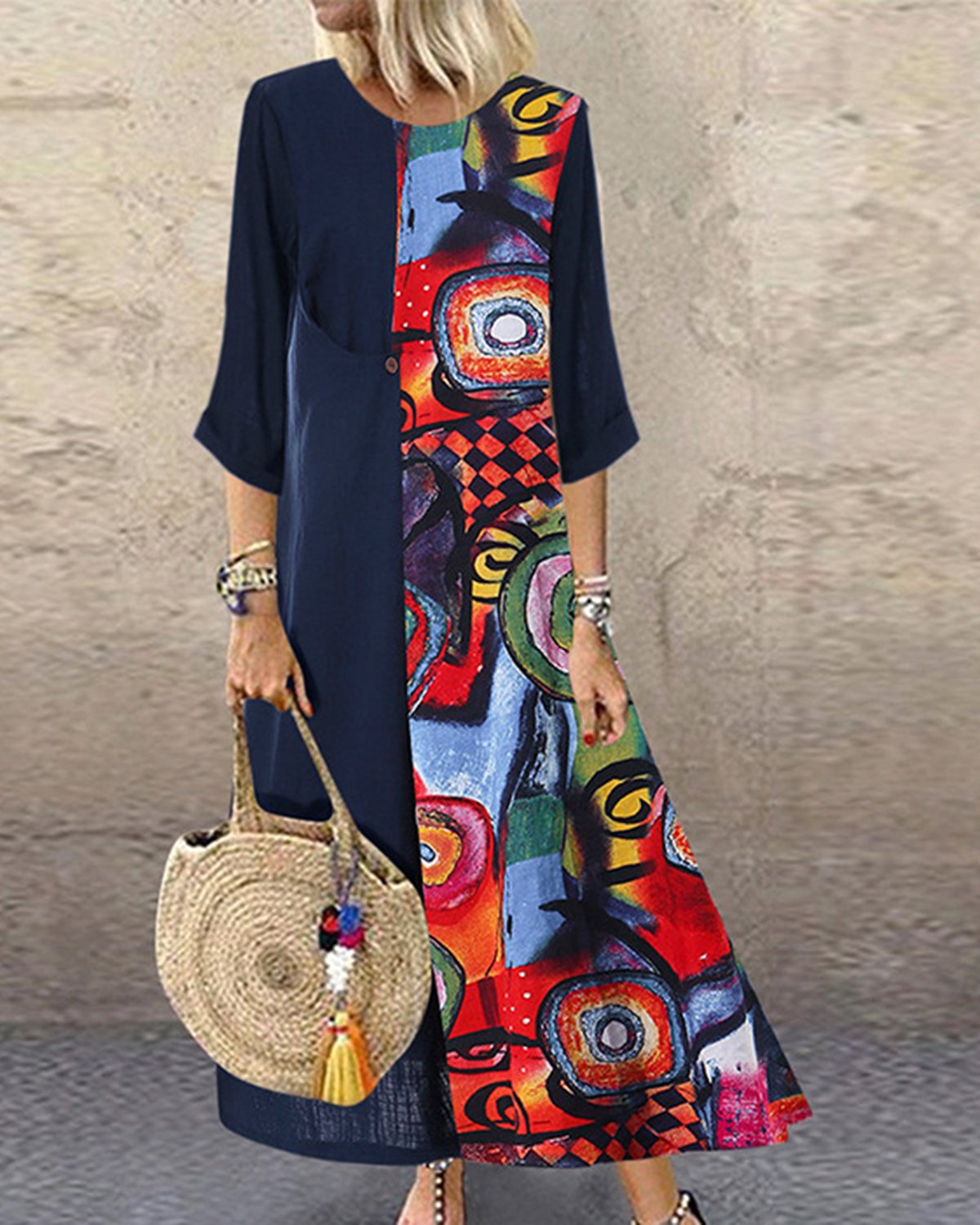 Boho Color Block Paneled Maxi Dresses