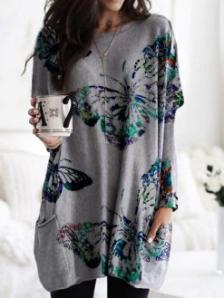 Casual Butterfly Sleeveless V Neck Plus Size Printed Dress