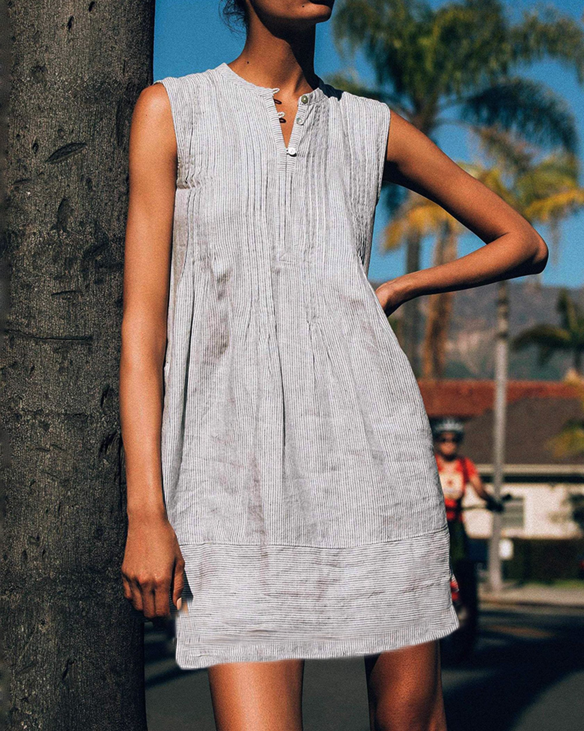 Casual Buttoned Linen Woman Mini Dresses