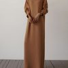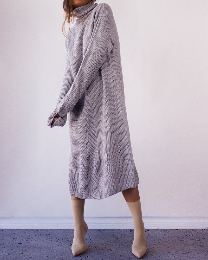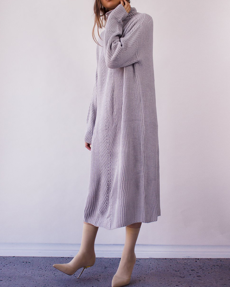 Casual Long Sleeve Solid Loose Knit Sweater Maxi Dress