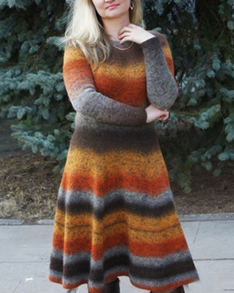 Casual round neck print sweater dress