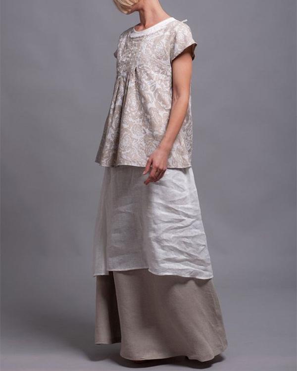 Casual Short Sleeve Linen Paneled Maxi Dresses