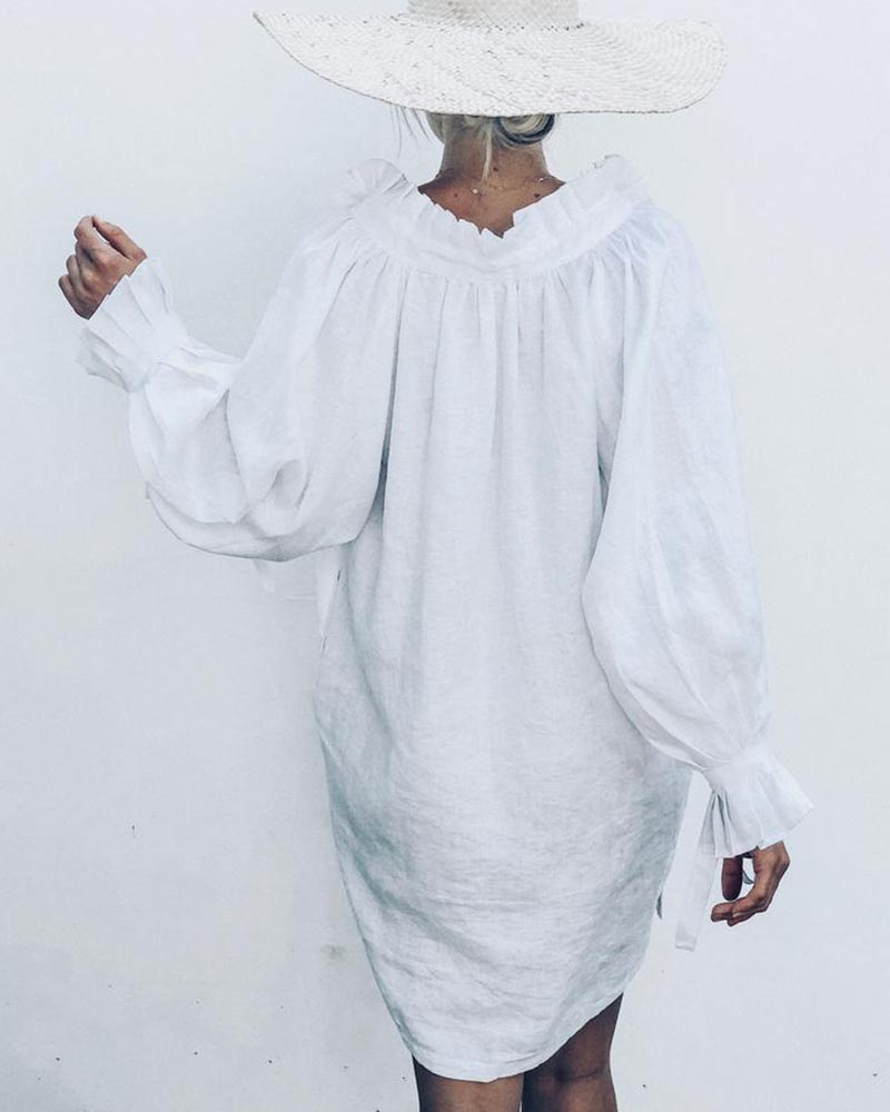 Casual Solid Long Sleeve Stand Collar Dress