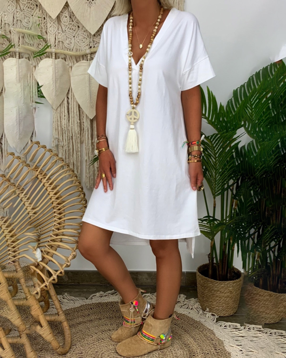 Casual v-ncek short sleeve plain mini dress