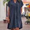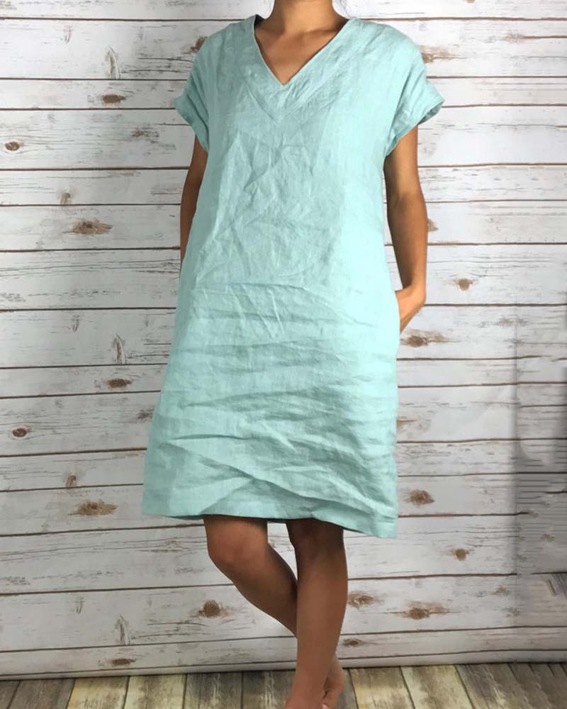 Casual V-neck cotton line mini dress