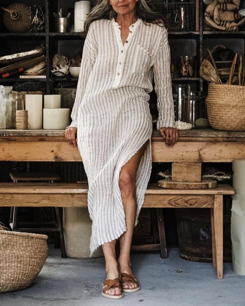 Casual V-neck Long Sleeve Stripe Dress