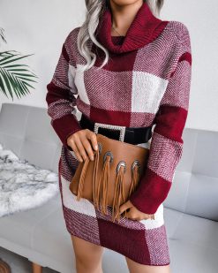 Be the first to review “Contrast large plaid knitted dress” Cancel reply