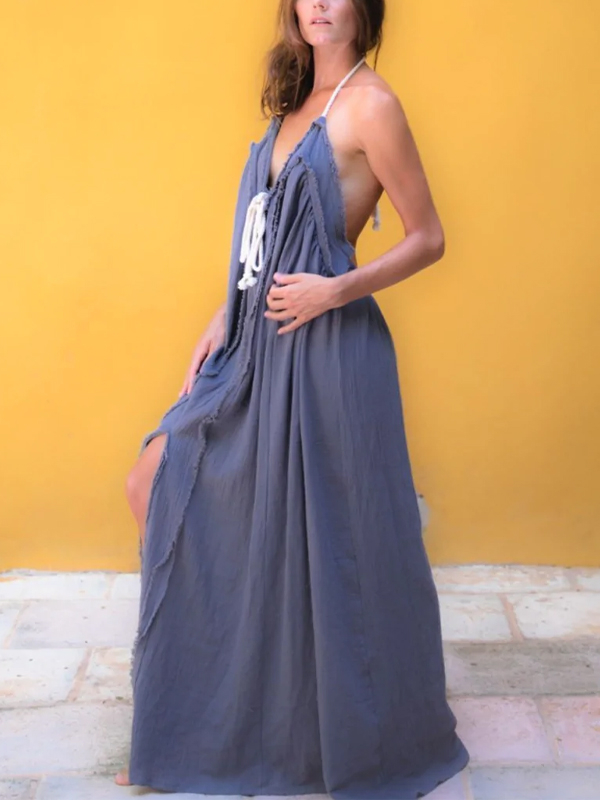 Halterneck solid color dress