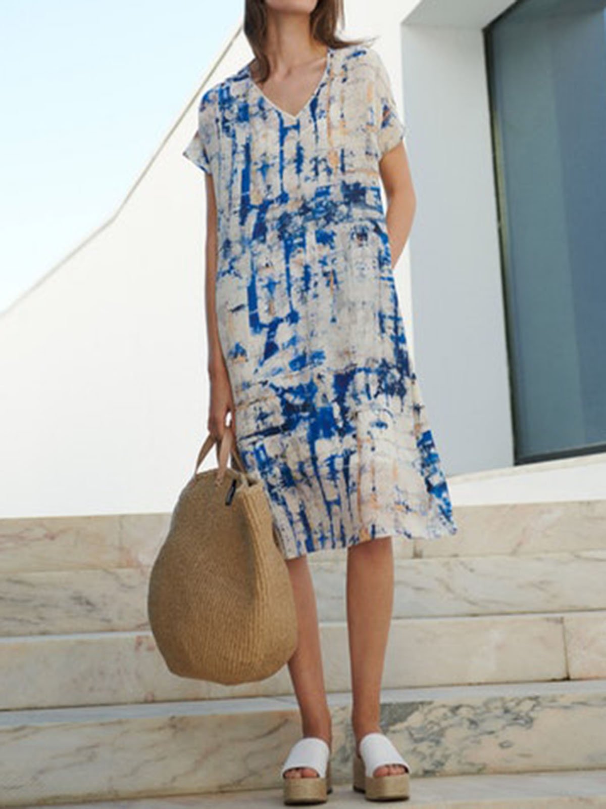 Holiday Women V neck Printed Dress