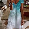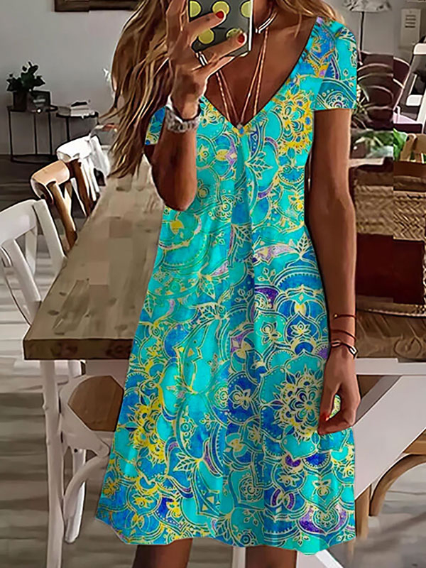 Plus size V Neck Casual Short Sleeve Printed Dress