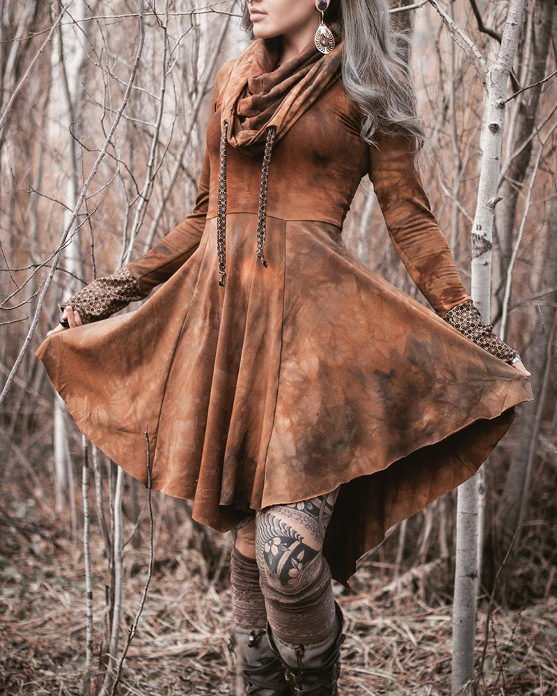 Retro hooded long sleeve dress