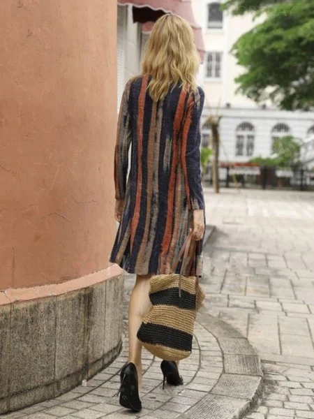 Round neck striped straight dress