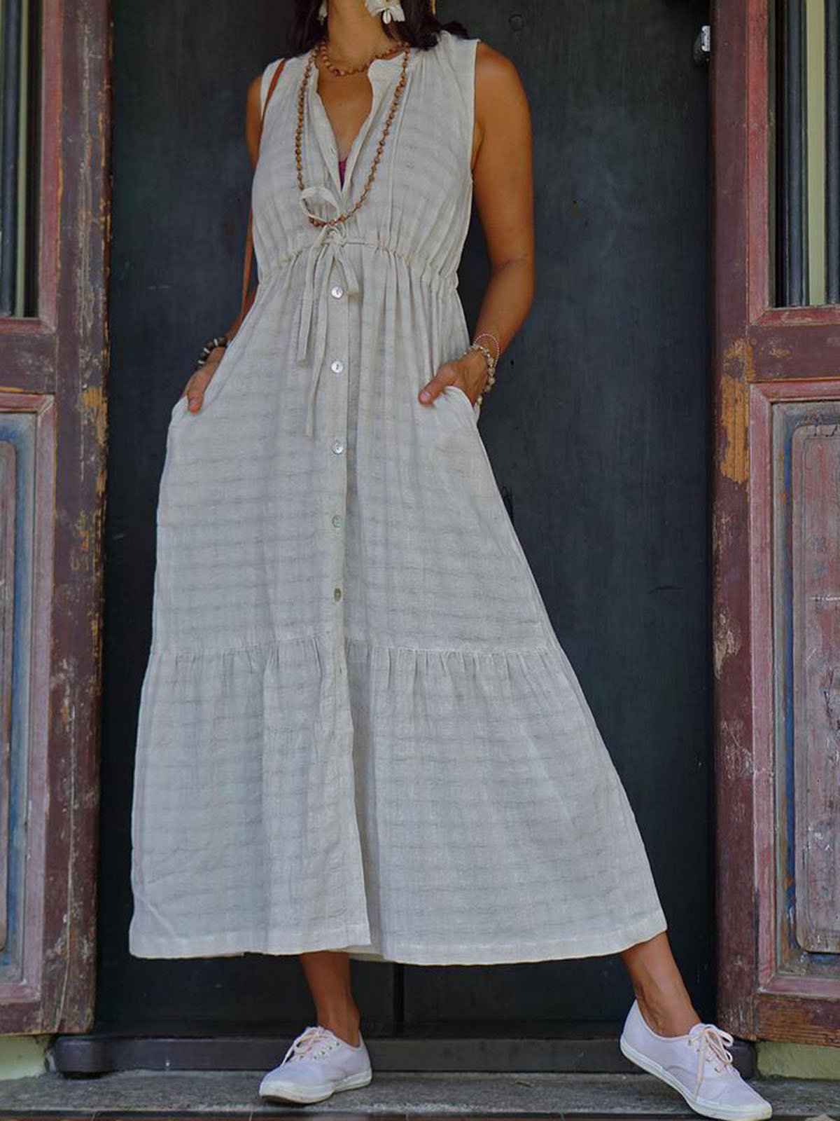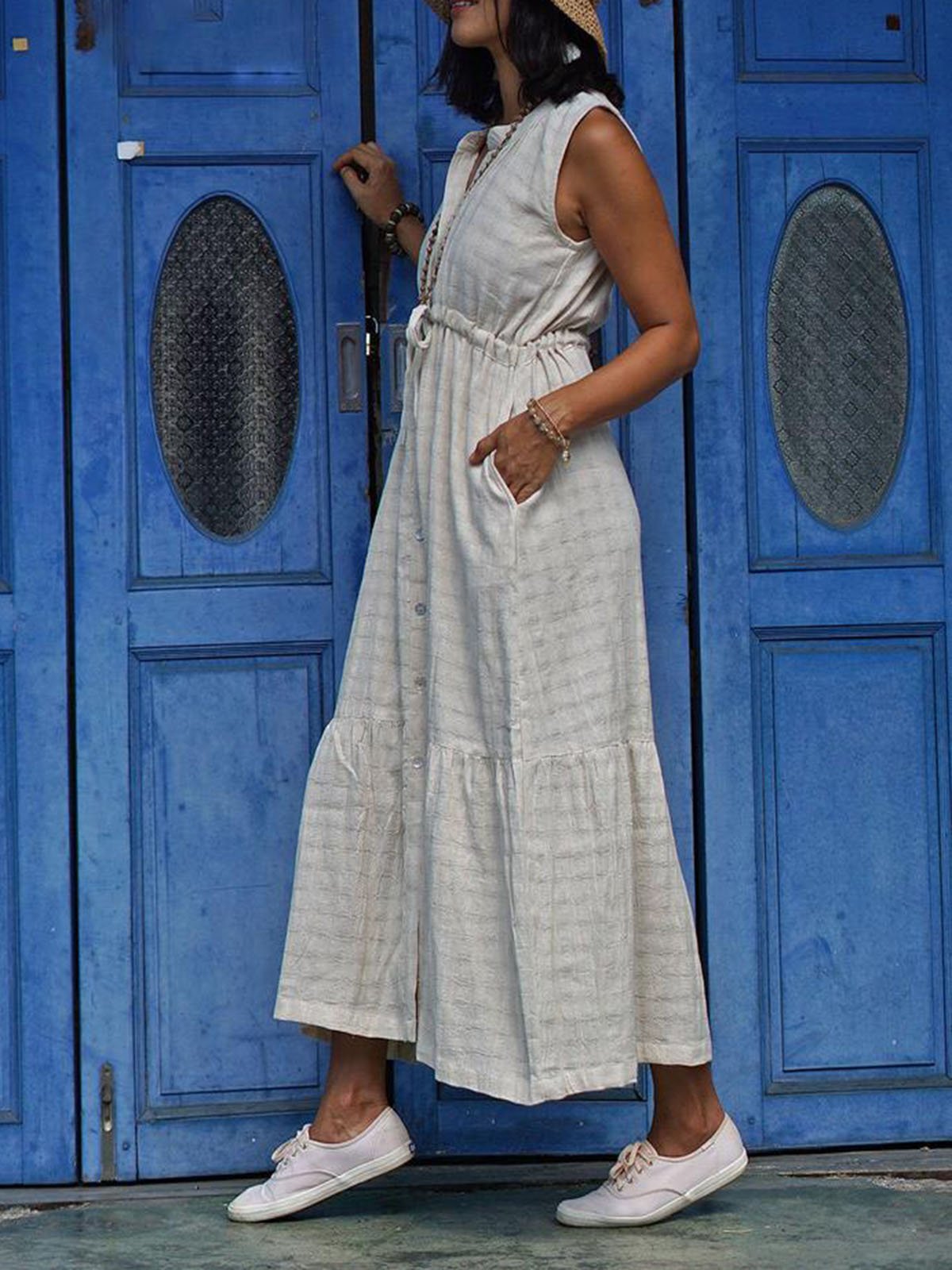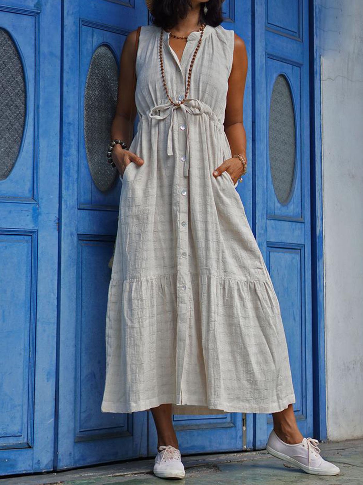 Stripe Casual Solid Sleeveless Dress