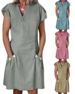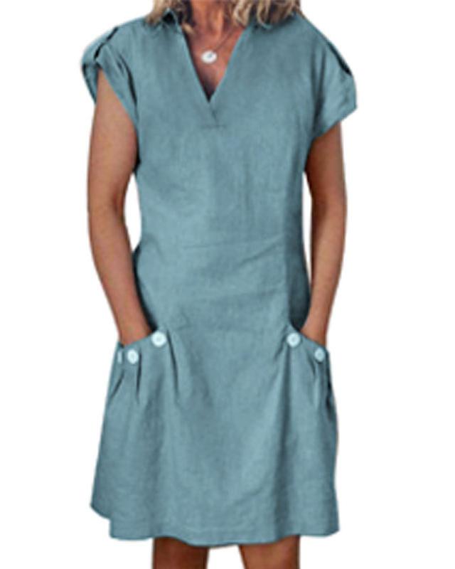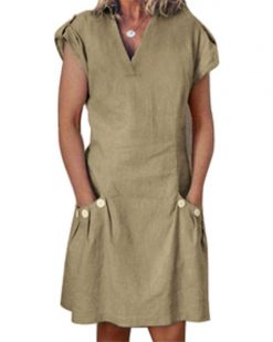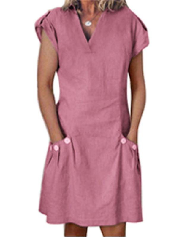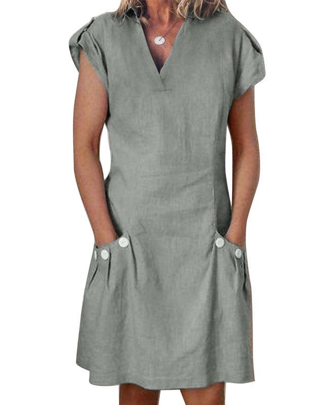 V-neck cotton and linen straight dress
