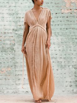 V-neck solid linen maxi dress