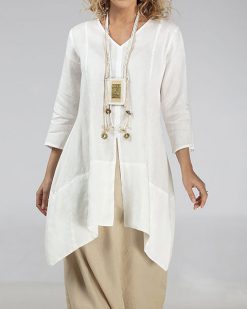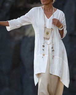 V-neck split cotton and linen dress