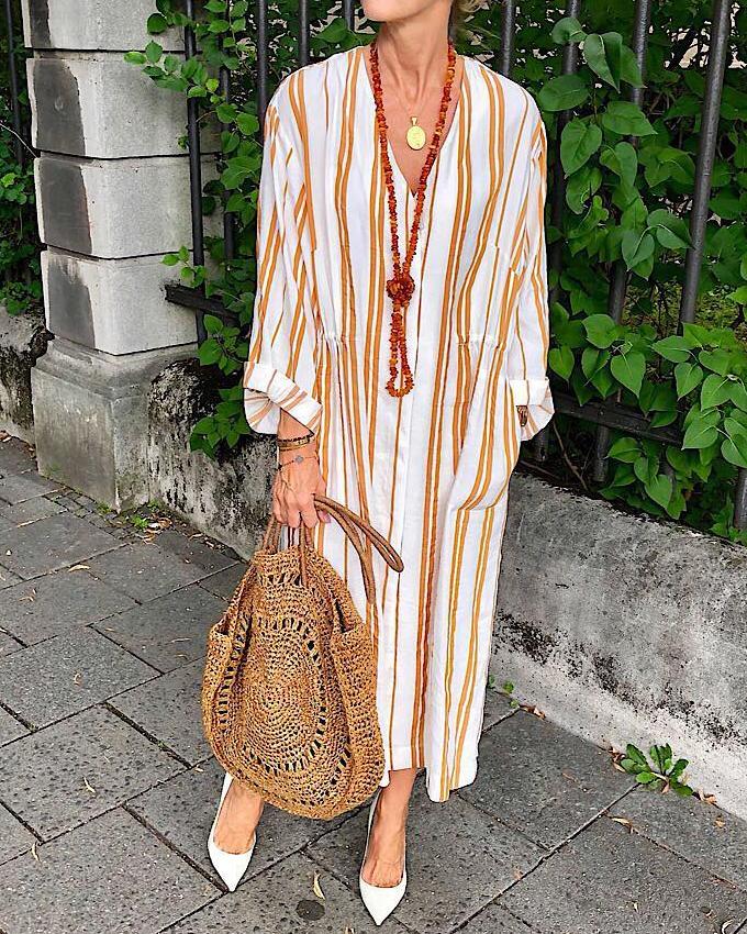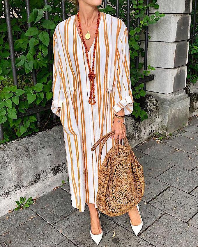V-neck striped linen dress