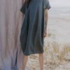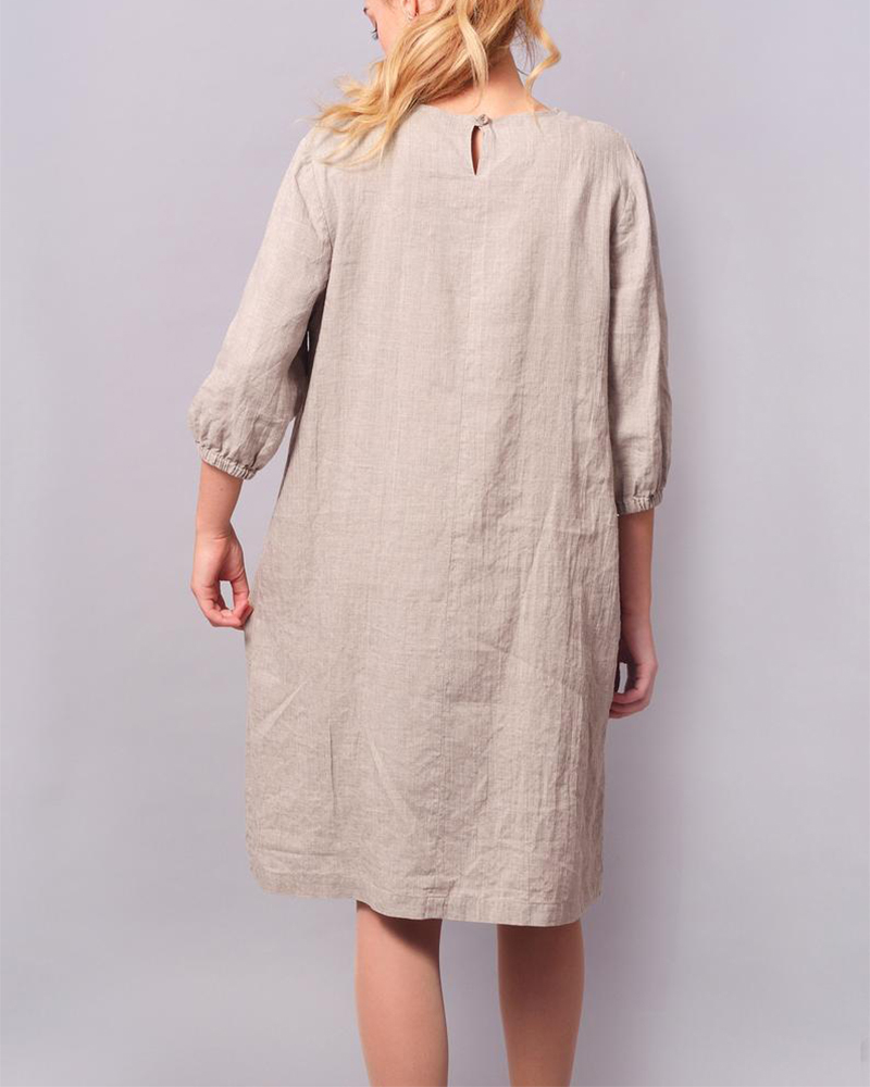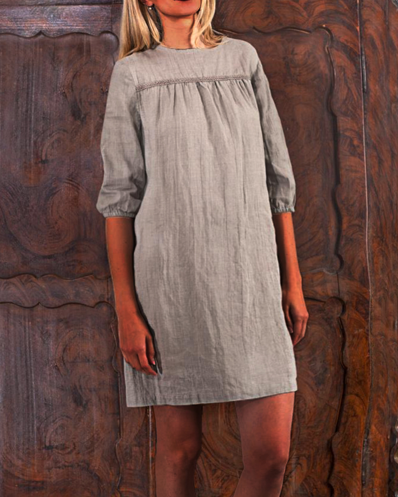 Vintage Short Sleeve Loose Solid Woman Mini Dress