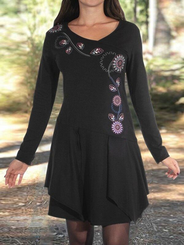 Women’s Long Sleeve flowers Printed Dress