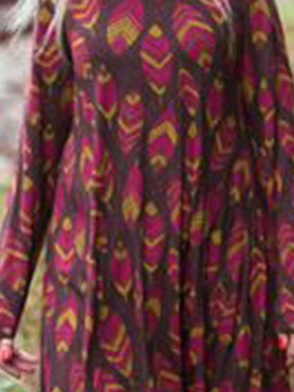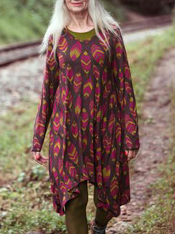 Women’s round neck leaf print long sleeve dress