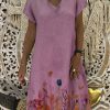 Women’s round neck long printed T-shirt