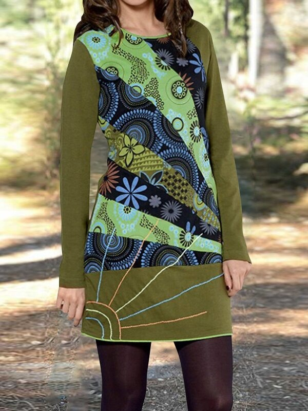 Women’s Round Neck Printed Long Sleeve Dress