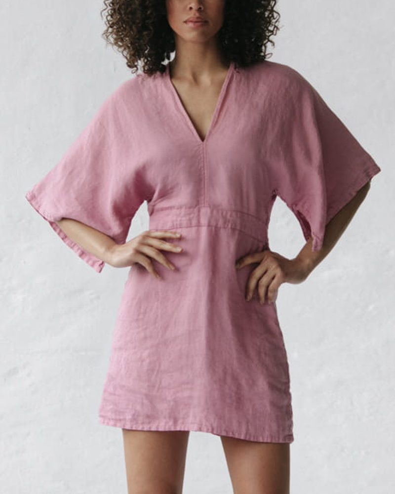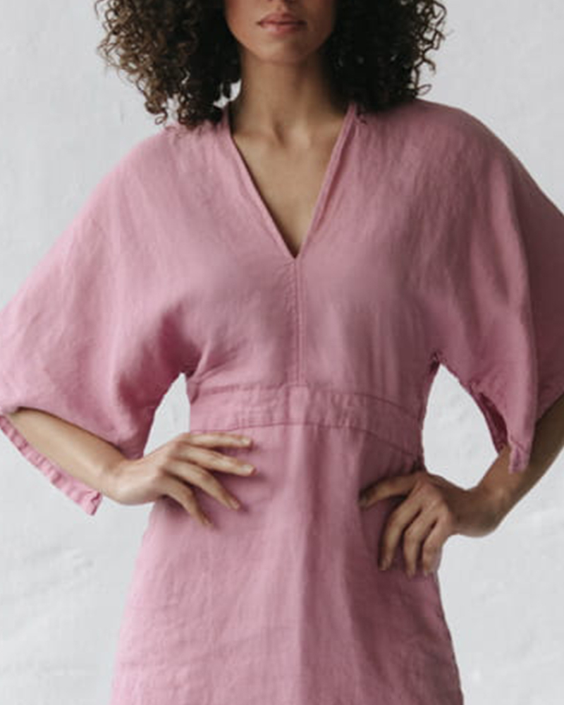 Women’s V-neck Sleeve Cotton and Linen Dress